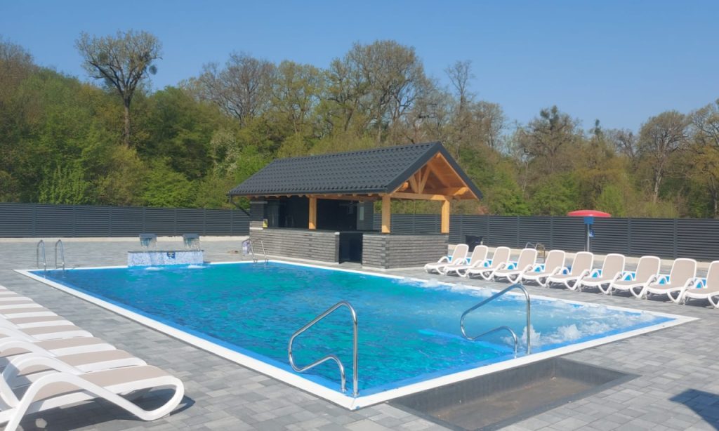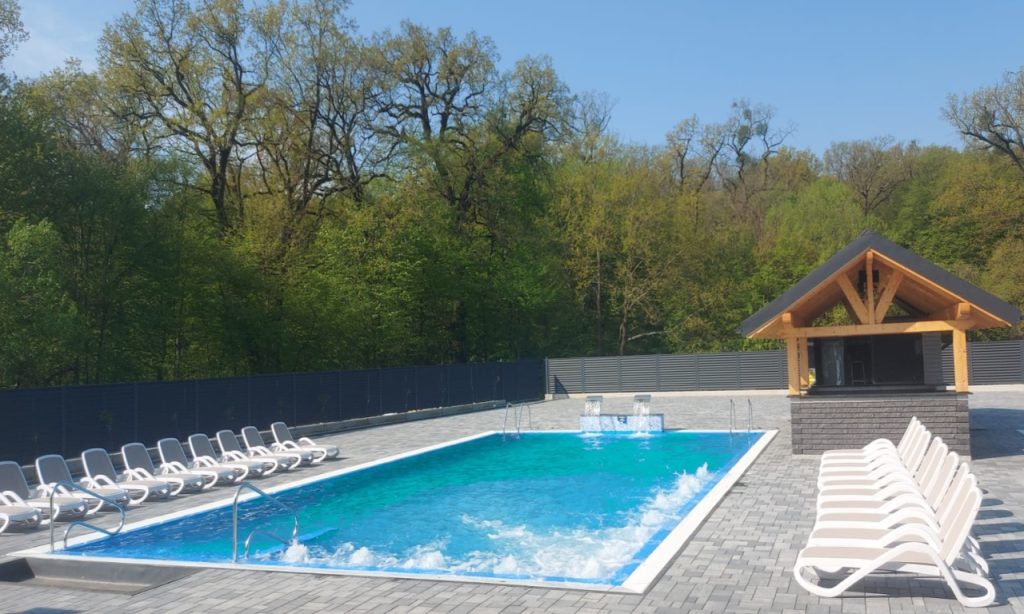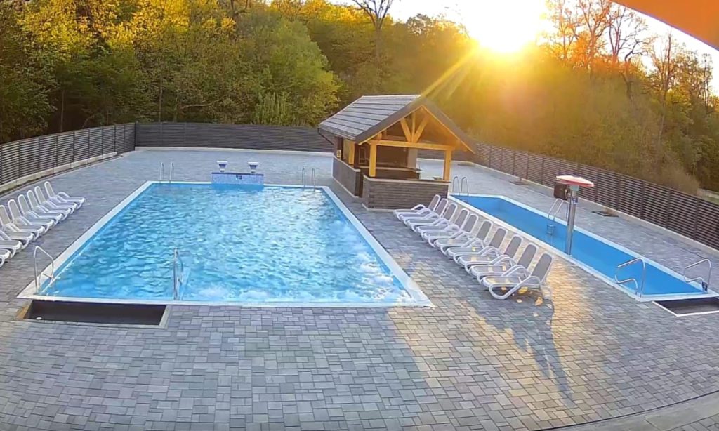 Prima piscină exterioară, are dimensiunile de 10×7 m, este cu apă termală, cu temperatura cuprinsă între 32-35°C, iar cealaltă are dimensiunile de 7×4 m, este cu apă încălzită, la temperatura de 30-33°C.